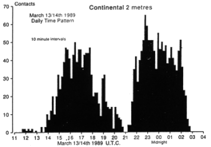 Wenn Radio-Aurora auftritt, dann sind die meisten QSOs am späten Nachmittag