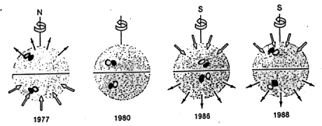 (Südhalbkugel umgekehrt). Um 1980 verschwanden die Polfelder.