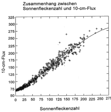 mit dem Index R für Sonnenfleckenrelativzahlen. Der Flux wird seit November