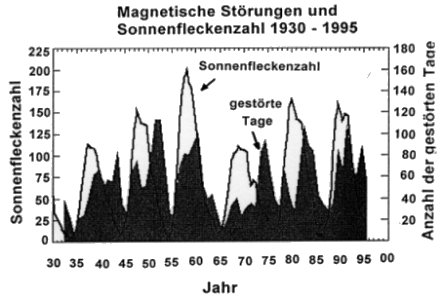 mit dem Maximum der Sonnenflecken zusammen, sondern erfolgt 2 bis 3 Jahre
